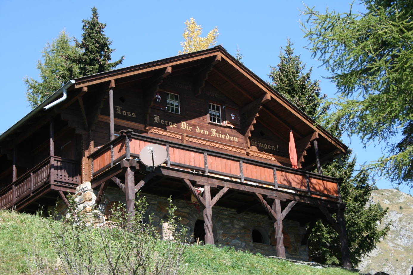 Wir vermieten in sehr guter Lage auf Riederalp das freistehende Einfamilienchalet Bergzauber. (Planquadrat L10 im Ortsplan des Tourismusvereins, Postfach 1032). Vom Basler Kunstmaler Rolf Vollé Ende der 30er Jahre erstellt, strahlt das von einem Arven- und Lärchenwäldchen umgebene Haus eine Atmosphäre aus, die neuere Wohnungen nicht bieten können. Der Umschwung mit den nicht einsehbaren, geschützten Spiel- und Ruheplätzen misst über 2000 m2. Im Winter schnallen Sie die Ski vor der Haustüre an und fahren direkt zur Talstation der Sesselbahn nach Riederfurka.